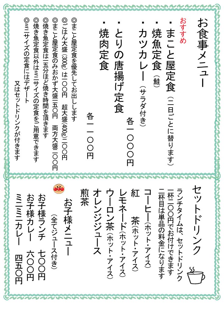 まこと屋のメニュー